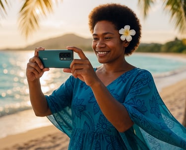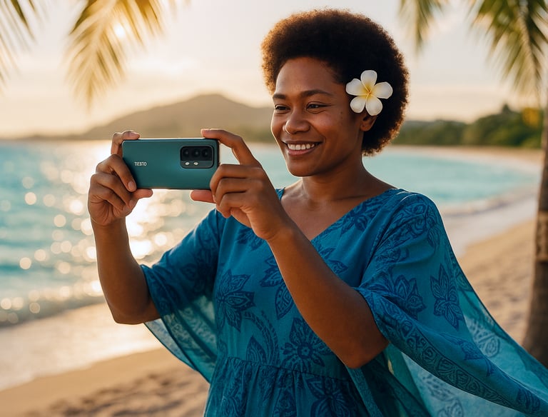 The Tecno S25 features a high-resolution camera, long battery life, and a vibrant display perfect for capturing island moments.